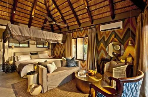 南非的Sabi Sabi Bush Lodge坐落在叢林之中,營造奢華獵游的氛圍。酒店建筑的建造融合了非洲的特色:活力和熱情,被譽(yù)為“叢林之中的奢華行宮”。經(jīng)典的非洲設(shè)計(jì)格調(diào)體現(xiàn)了一個(gè)充滿活力且絲毫不張揚(yáng)的野性奢華,其家具和裝飾品是來自于非洲大陸各個(gè)角落的收藏品。
