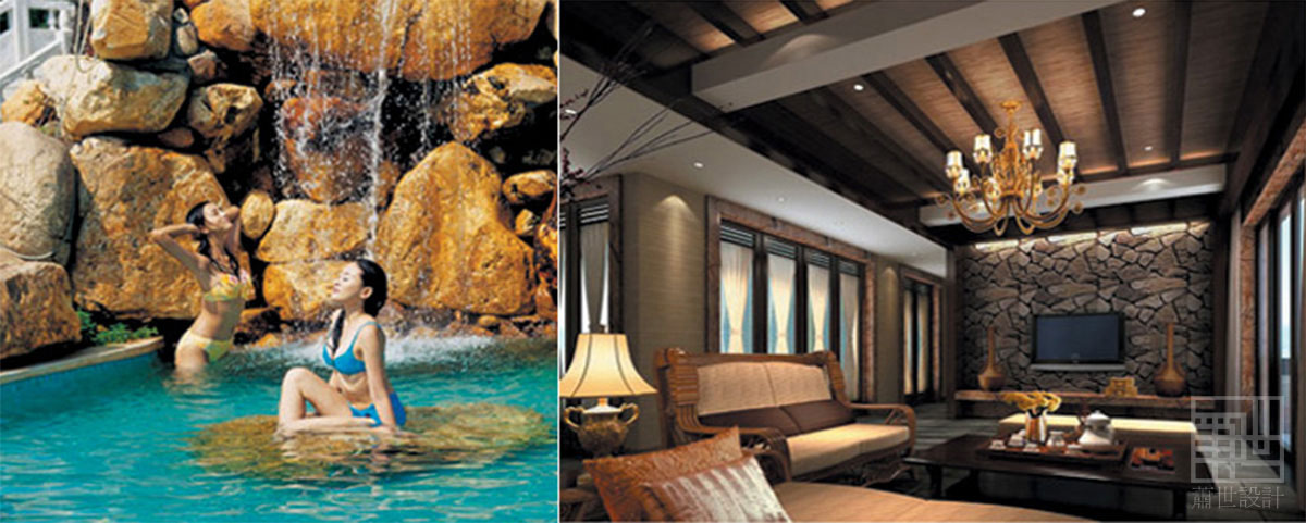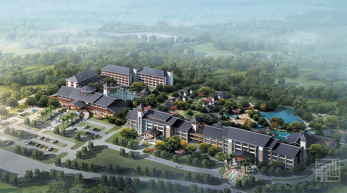 度假酒店整體建筑風格以中式風格為主線,即體現江南園林的精致有不失北方園林的大氣,打破北方室內溫泉封閉洗浴的常規經營模式,強調溫泉SPA療養自然生態沐浴的閑適,溫泉產品的設置體現了精致、生態、養生的溫泉沐浴理念。