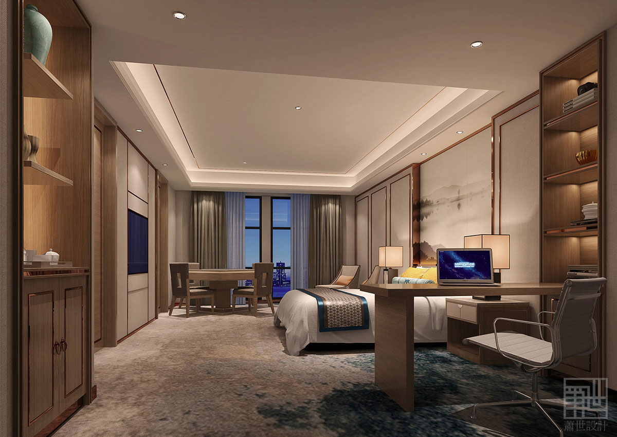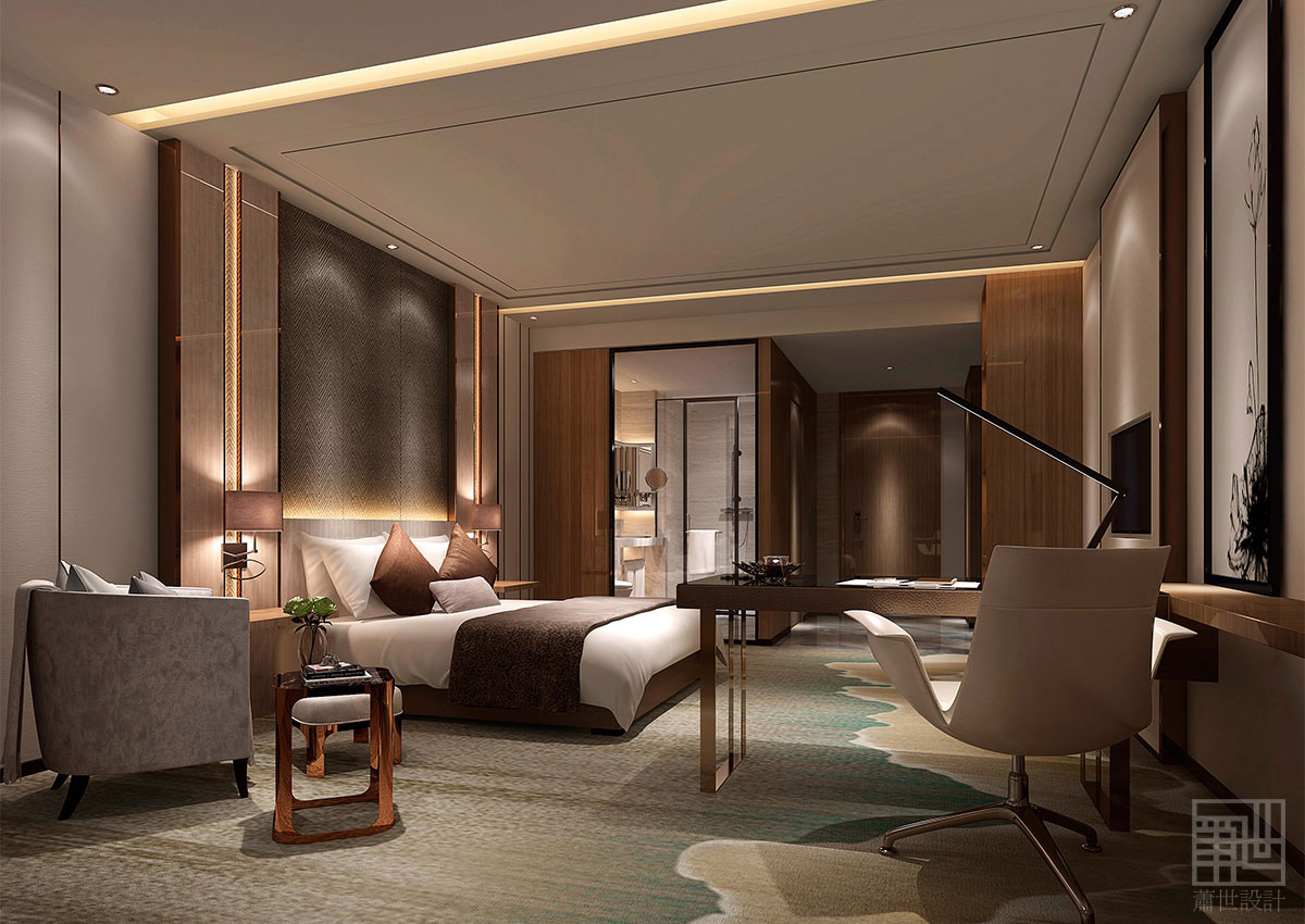 酒店客房室內設計力圖與建筑設計的思想一致,并充分利用現有建筑的空間進行再設計,以創造出布局合理、使用方便、舒適高雅為最終目的私享空間。設計師意圖向客人傳遞簡單、質樸的生活理念。