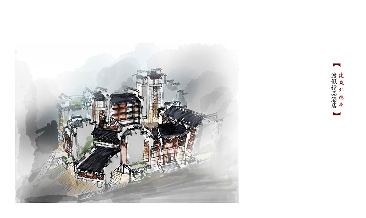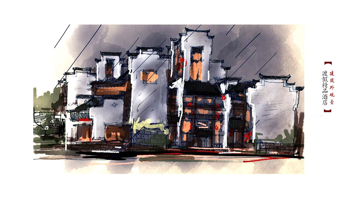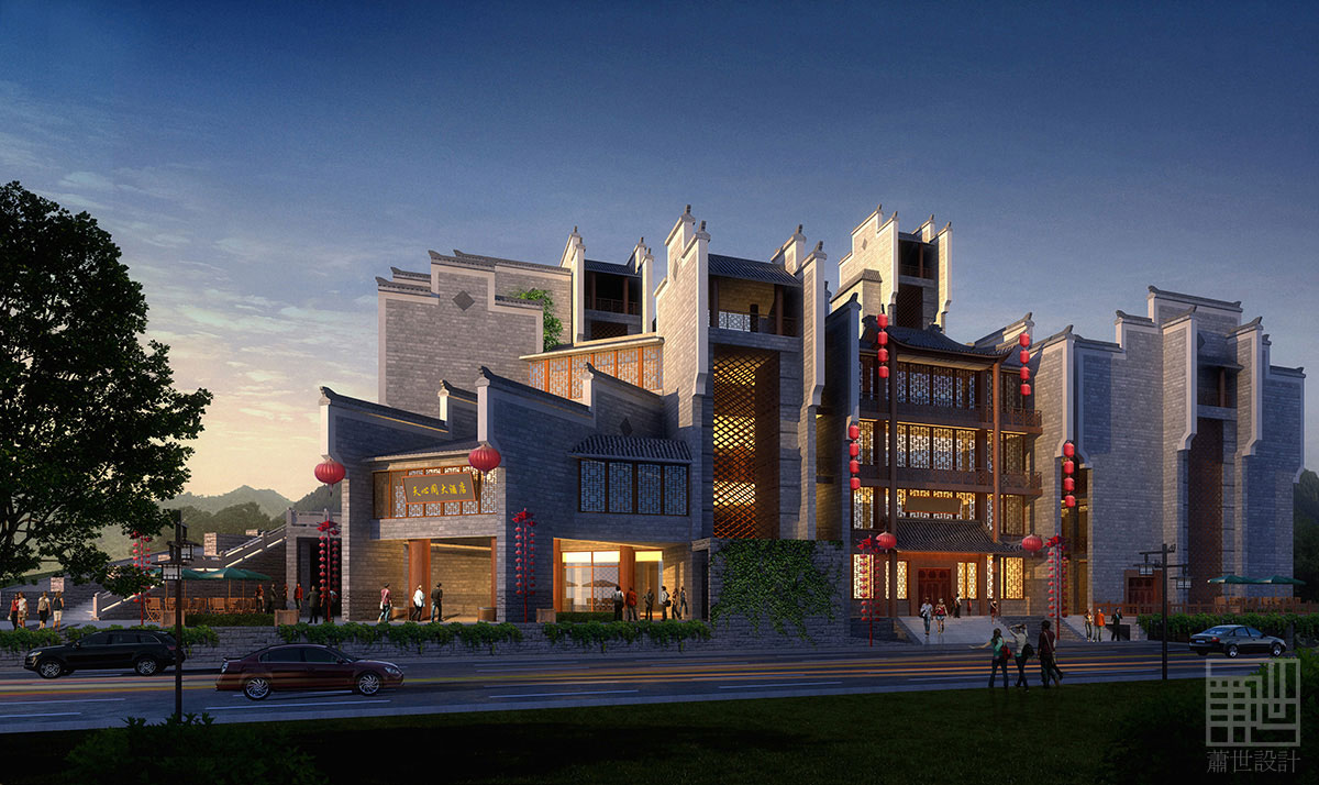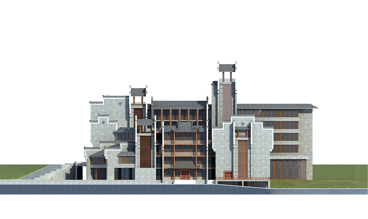 「天心·城市精品酒店」的整體風格為帶有徽派建筑色彩的現代建筑,而徽派的建筑語言與現代酒店建筑尺度之間的矛盾便成為這次設計任務中最主要的考量。